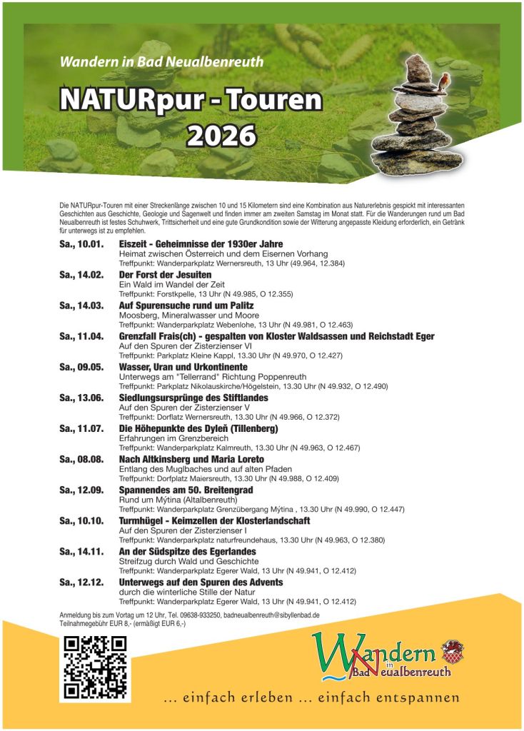 Wir bieten Ihnen ab Ostern bis Ende Oktober unterschiedliche Entdeckertouren mit unseren Wanderexperten in Bad Neualbenreuth an.