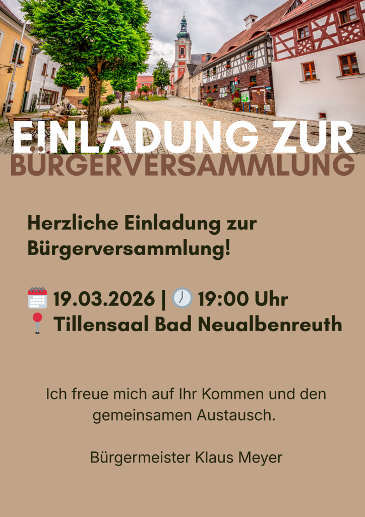 Am 19.03.2026 findet um 19:00 Uhr die BĂŒrgerversammlung im Tillensaal statt. Wir freuen uns ĂŒber zahlreiche Teilnehmer.