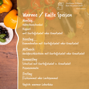Warme und kalte Speisen im Dorfladen